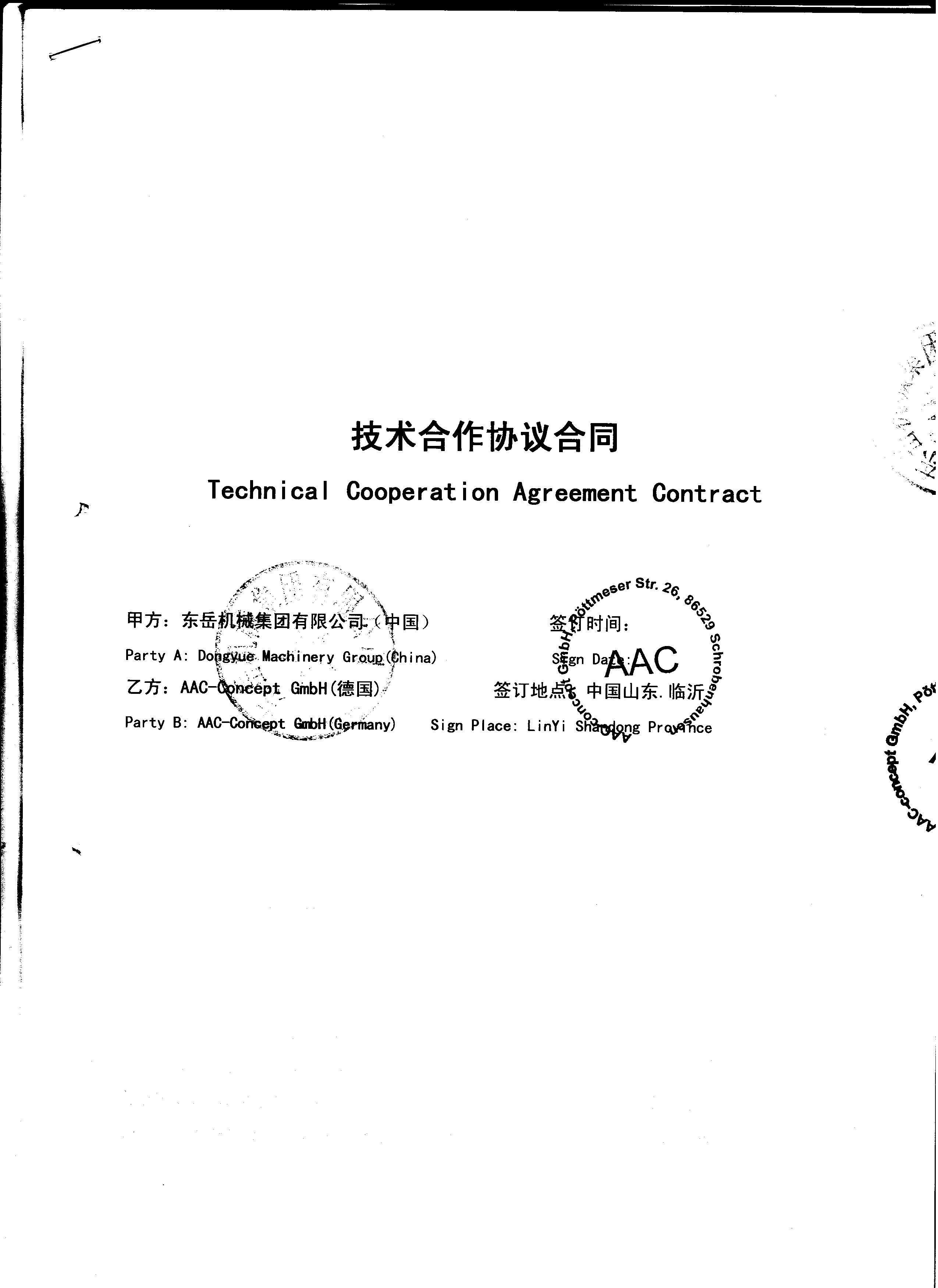 ?東岳機械股份有限公司與德國卡茨貝通集團技術(shù)合作協(xié)議證明: