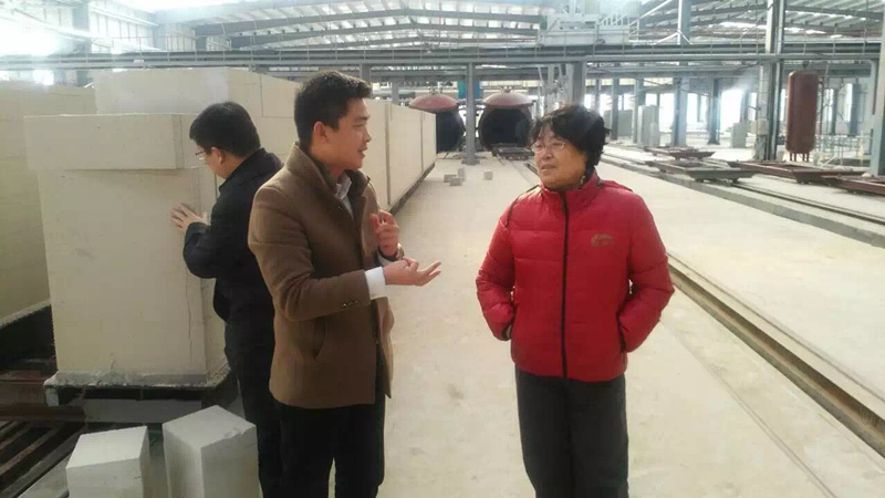 隨后,滕會(huì)長(zhǎng)一行來(lái)到東岳加氣混凝土生產(chǎn)線車(chē)間,對(duì)生產(chǎn)線的垃圾循環(huán)利用及節(jié)能環(huán)保等設(shè)計(jì)創(chuàng)新給予了充分肯定。希望能進(jìn)一步組織好調(diào)試生產(chǎn),針對(duì)煙氣凈化處理設(shè)備做好效果檢測(cè),真正把環(huán)保墻材生產(chǎn)建設(shè)落到實(shí)處,在行業(yè)起到表率作用。滕會(huì)長(zhǎng)參觀了東岳加氣混凝土砌塊生產(chǎn)線(板材生產(chǎn)線)、灰砂磚生產(chǎn)線,對(duì)示范生產(chǎn)線的運(yùn)行與循環(huán)處理情況給予肯定,對(duì)集成房屋的建設(shè)極力推廣。